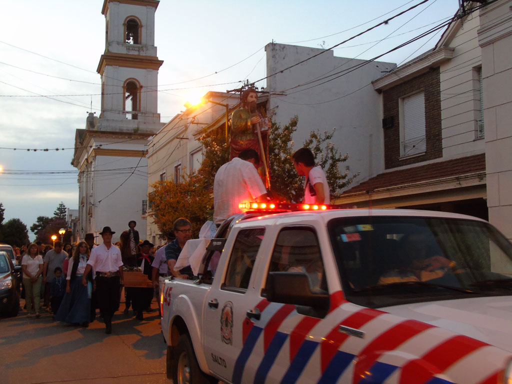 Por la tarde y, complementándose con la misa vespertina, alrededor de quinientos fieles de la grey católica local participaron de la procesión que , con las imágenes del Santo Patrono San Pablo y del Cura Brochero, se realizó a partir de las 20 horas por calles: San Pablo, Rivadavia-San Martín, Avda. Mitre, 9 de Julio y Aristóbulo del Valle hasta la Parroquia central.