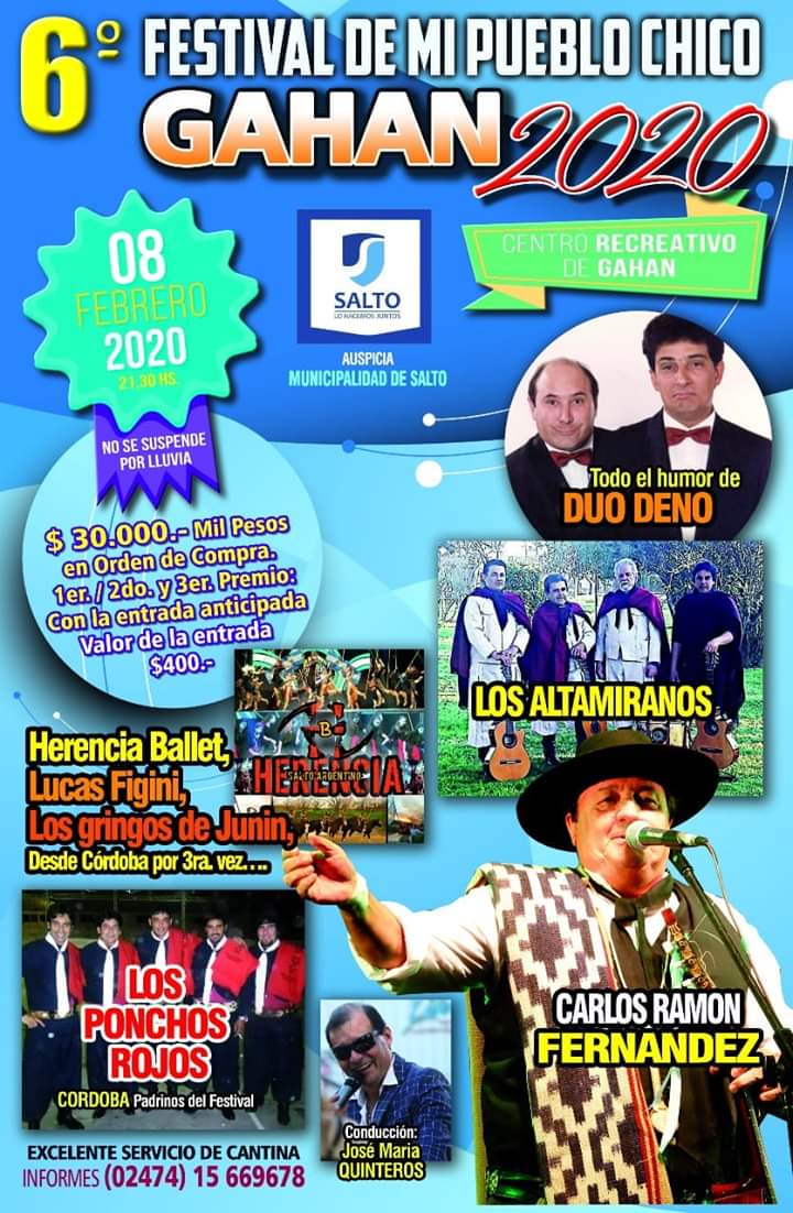 El próximo 8 de Febrero en el Club «Centro Recreativo» de dicha localidad, se realizará el festival folclórico que contará con la presencia de «Los Altamiran