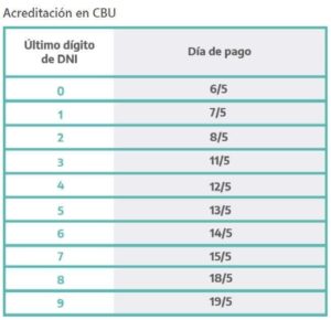 A continuación detallamos día de pago para los beneficiarios que no cobren por Correo Argentino y hayan seleccionado Red Link, Red Banelco, Cuenta DNI o Acreditación CBU.