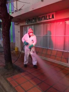 Hoy se realizaron tareas de desinfección en espacios públicos de la localidad y mañana personal Municipal de Bromatologia se encontrará reforzando las tareas realizadas.