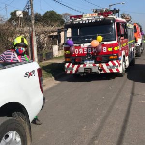 Ello fue posible gracias al esfuerzo conjunto de la Asociación de Bomberos Voluntarios y comunidad de Gahan que, con el apoyo de la Municipalidad de Salto, pudieron distribuir, puerta a puerta, regalos y golosinas para toda la niñez  de la localidad. Efectivos bomberiles, tanto del Cuerpo Activo como de C.D., algunos vestidos de payaso, repartieron más de 170 bolsitas con gran variedad de dulces. ¿El objetivo ? llevarle una sonrisa a cada niño/a de la comunidad.