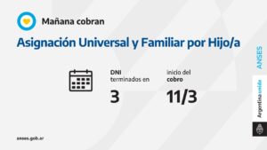 Conjuntamente, se paga la Ayuda Escolar Anual a quienes cobren la AUH o Asignación Familiar con esa misma terminación de DNI. Se abona por menor entre 4 y 16 años inclusive, o por hija o hijo con discapacidad, sin límite de edad. El beneficio lo percibe uno de los progenitores o tutor y para su cobro será necesario haber presentado el certificado escolar.