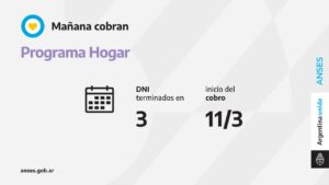 La ANSES y la Secretaría de Energía impulsan en conjunto el Programa Hogar, mediante el cual se otorga un subsidio para la compra de garrafas en viviendas que no están conectadas a la red de gas natural. Mañana cobran este beneficio las personas con documentos concluidos en 3.