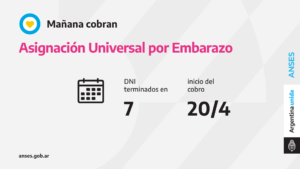 Con la utilización de la tarjeta de débito, mañana cobran la Asignación Universal por Embarazo las titulares con documentos finalizados en 7.