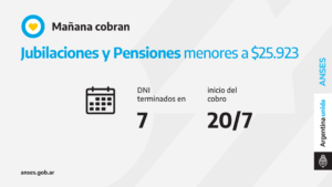 Las sucursales bancarias habilitadas atenderán por ventanilla a jubilados, jubiladas, pensionados y pensionadas con documentos terminados en 7 cuyos haberes NO SUPEREN la suma de 25.923 pesos.