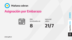 Con la utilización de la tarjeta de débito, mañana cobran la Asignación por Embarazo las titulares con documentos finalizados en 8.