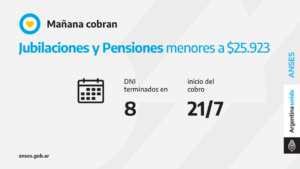 El organismo, a cargo de la Lic. Fernanda Raverta, informa que mañana se abonan jubilaciones, pensiones, Asignación Universal por Hijo, Asignaciones Familiares, Asignación por Embarazo y el programa Hogar.