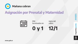 Las titulares de la Asignación por Prenatal y Asignación por Maternidad con documentos terminados en 0 y 1 perciben mañana su prestación.