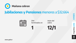 Las sucursales bancarias habilitadas atenderán por ventanilla a jubilados, jubiladas, pensionados y pensionadas con documentos terminados en 1 cuyos haberes NO SUPEREN la suma de 32.664 pesos.
