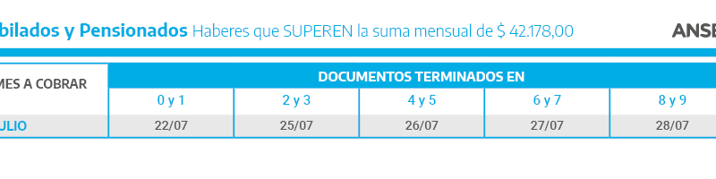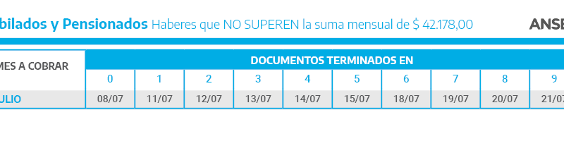 ANSES informa el calendario de pagos de julio para jubilados, jubiladas, pensionados y pensionadas, Pensiones No Contributivas, titulares de la Asignación Universal por Hijo y la Asignación por Embarazo, Asignaciones Familiares y de Pago Único (Matrimonio, Nacimiento y Adopción) y Prestación por Desempleo.
