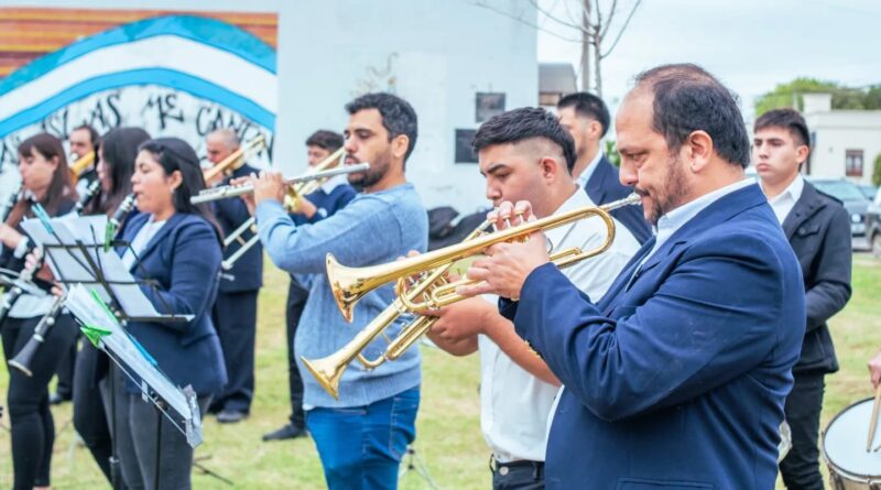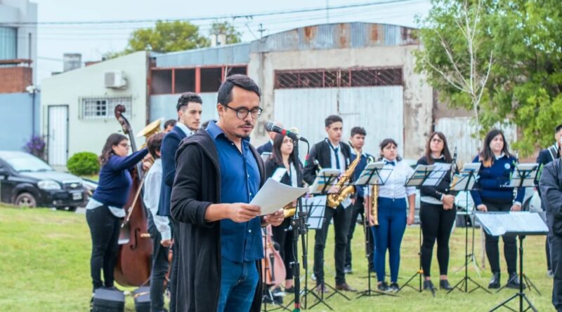 El acto contó con la presencia de autoridades municipales, Ex Combatientes de Malvinas y familiares de caidos, Instituciones educativas, Bomberos Voluntarios, Policia de la Provincia, Centro de Monitoreo, Banda de Música Municipal, representantes de la reconstrucción del mural a cargo de Lara Coresky y Alfonsina Diaz y público en Gral.