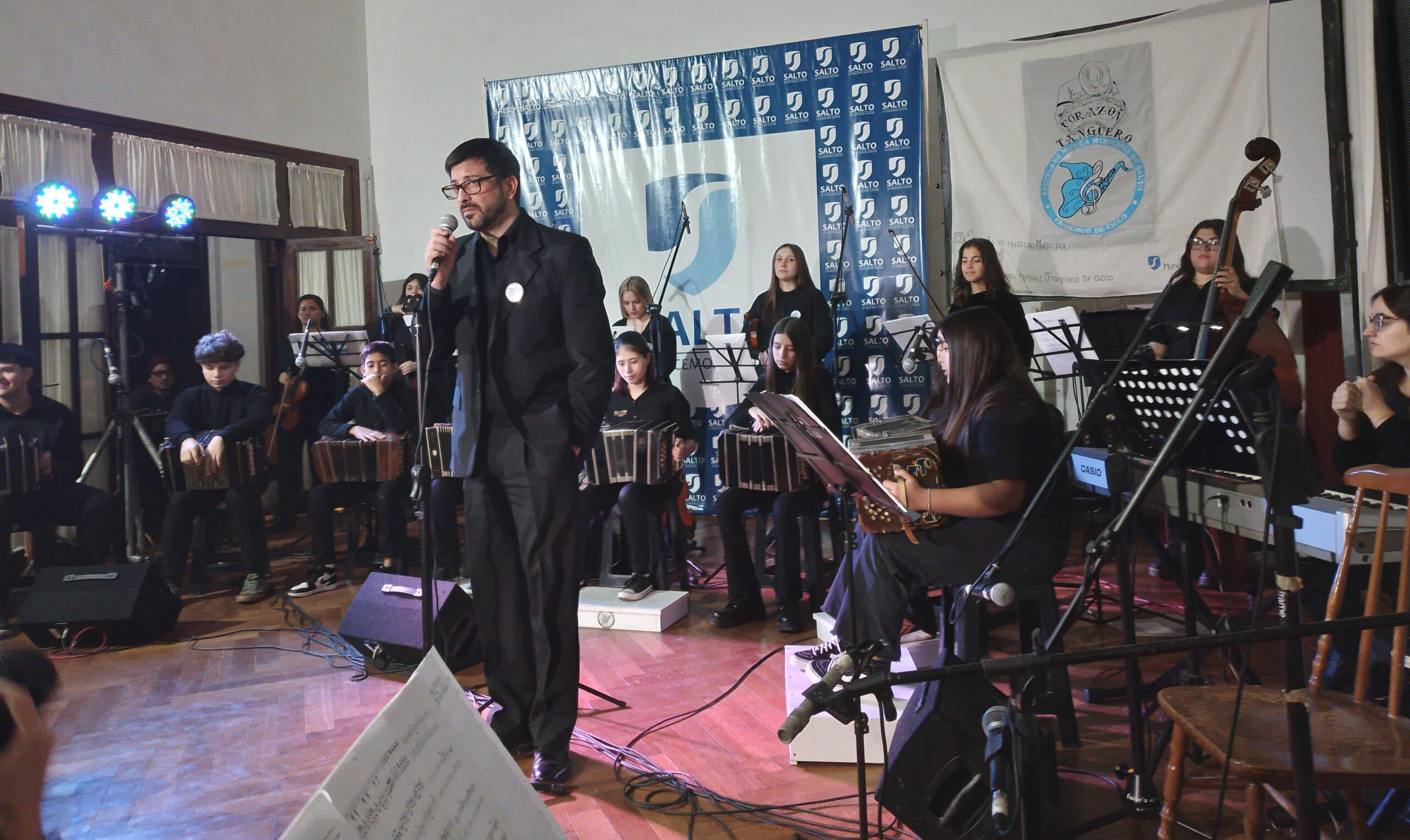 A continuación la juvenil orquesta «Corazón Tanguero», dirigida por el profesor Darío Jozami, brindó un magnífico recital, interpretando clásicos de nuestra música ciudadana, en algunos de ellos, como «Nada», «Cambalache» y «Malena», acompañando la dulce voz de Renata Maciel.